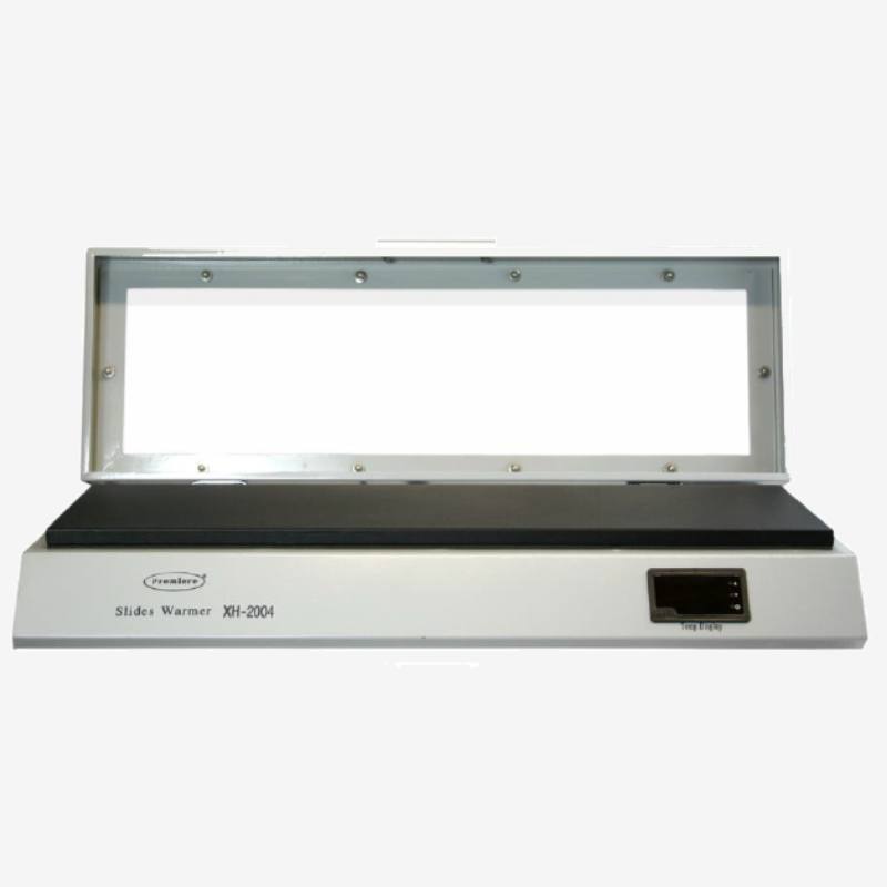 The Premiere XH-2004 Slide Warmer is a high-capacity thermal solution designed for histology, pathology, and research laboratories. Featuring an expansive surface that holds up to 66 slides, this model is equipped with a clear, integrated hinged cover. The cover is essential for experiments requiring stable humidity control and a consistent thermal environment, while simultaneously protecting specimens from dust and airborne contaminants.